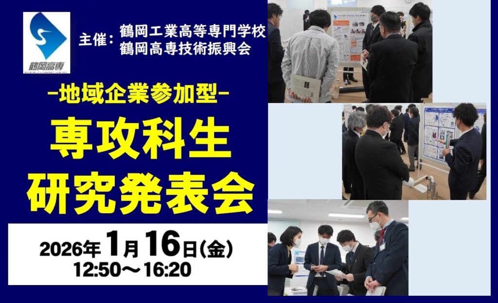地域企業の皆様に鶴岡高専専攻科1年生の研究発表を聴講いただく貴重な機会です。学生と直接意見交換や情報交換もできます。会員企業の皆様、ぜひご参加ください。